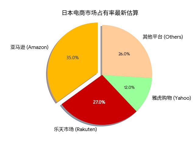 B2C市场占有率预计35%因全球开店政策入驻门槛低,大批海外商家涌入,竞争激烈。而日本市场占有率排名第一位的乐天市场(27%)和第三位的雅虎购物(12%)因海外商家入驻门槛高,本土开店居多。这些店铺的进货渠道稀少,以这群用户为主要对象的B2B至今仍是一片蓝海。